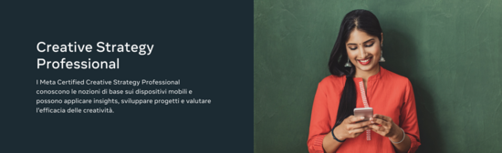 Questi corsi Blueprint di Meta sono stati selezionati dalle agenzie creative partner di Meta. Con loro, abbiamo creato questo percorso di apprendimento per i team delle agenzie creative desiderosi di tenere aggiornata la loro conoscenza delle funzionalità di Meta.